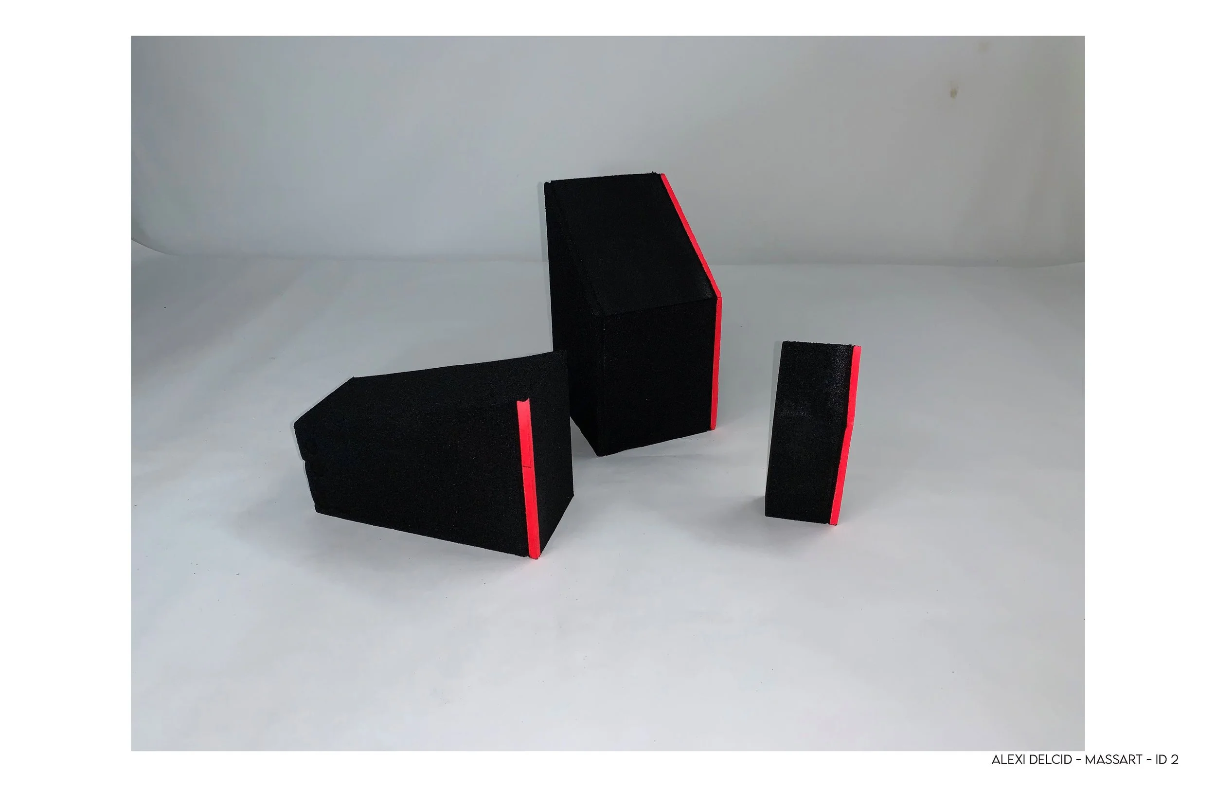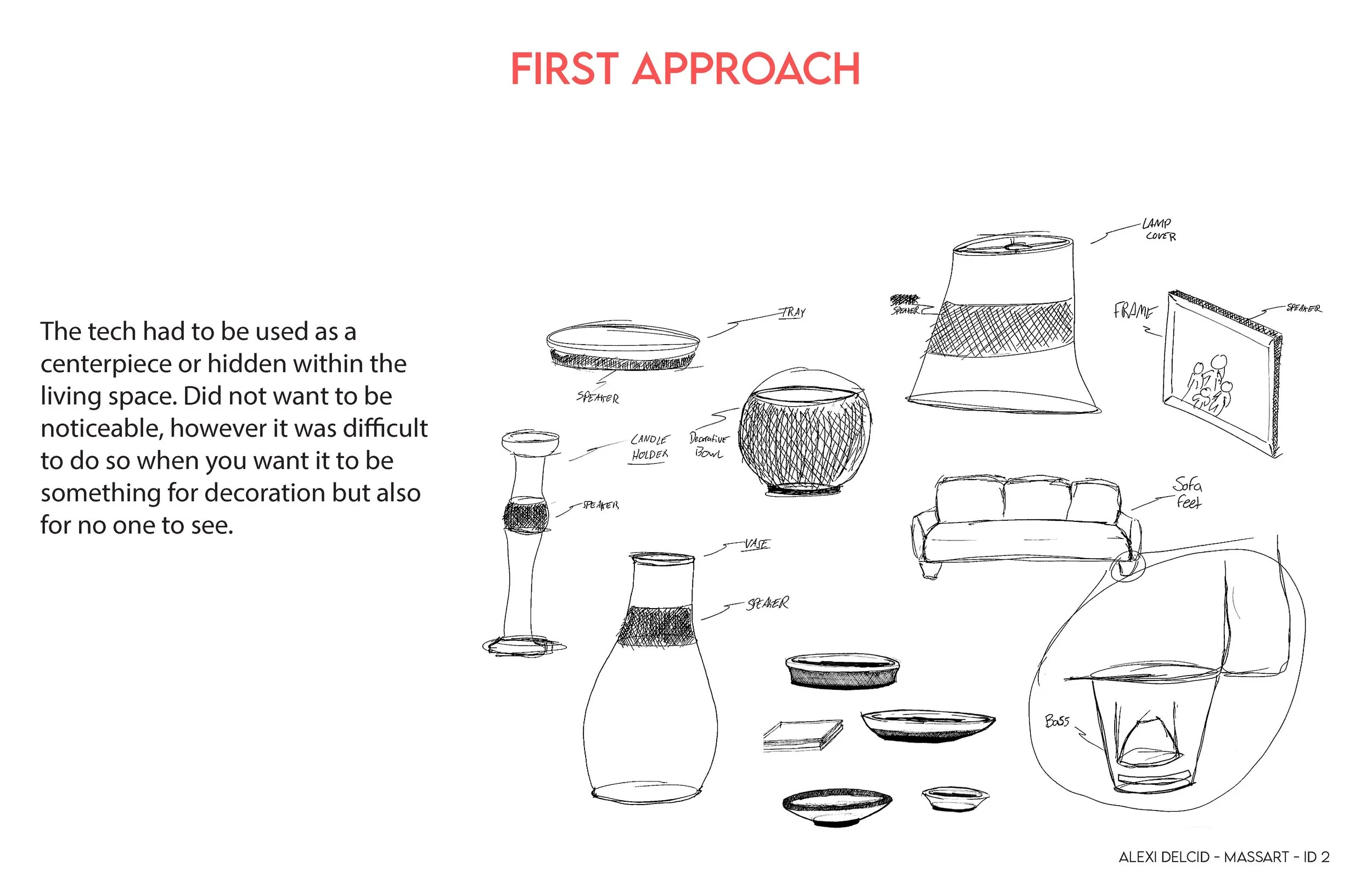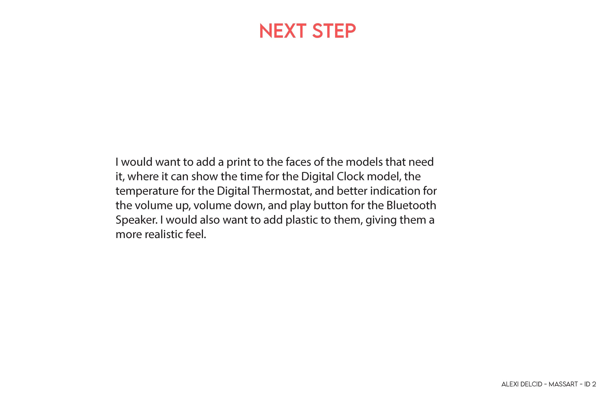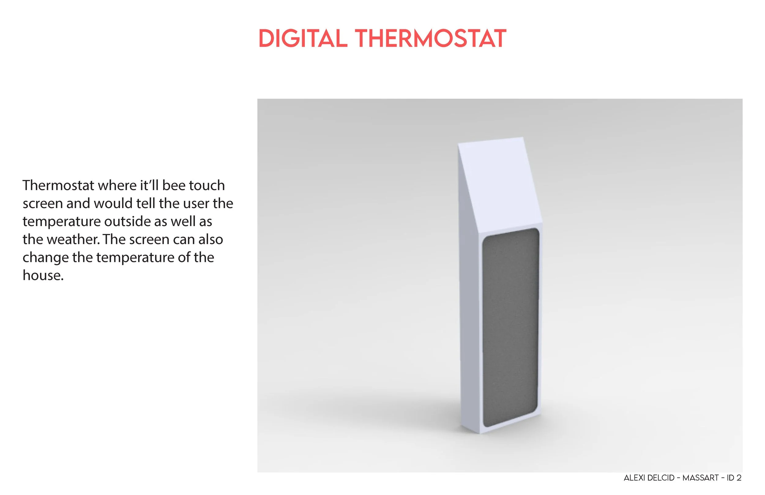 Playing with having a specific design choice on a family of gadgets, I decided to use a diagonal slant, or a cut off of a block to show the key design on a speaker, digital clock, and thermostat.